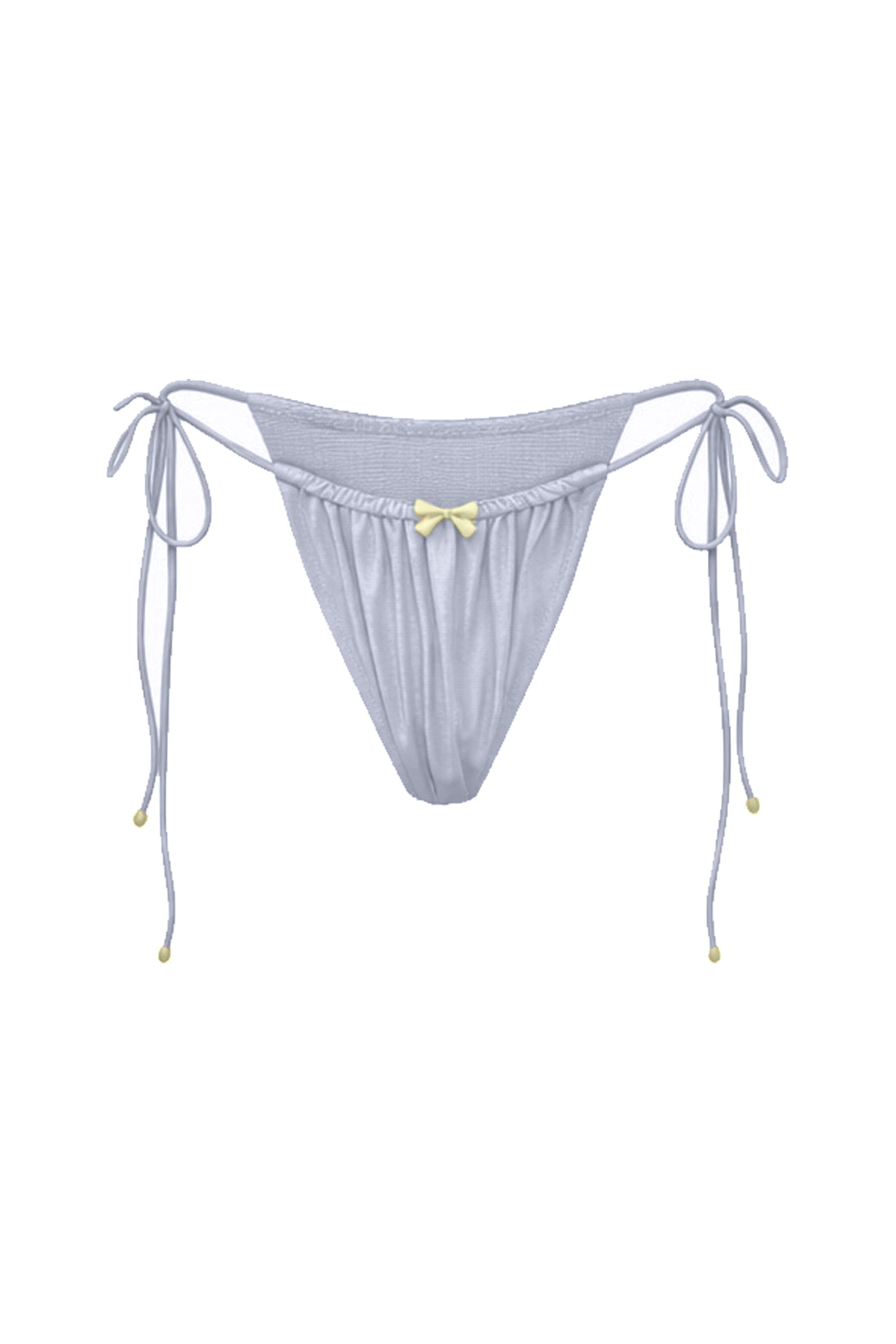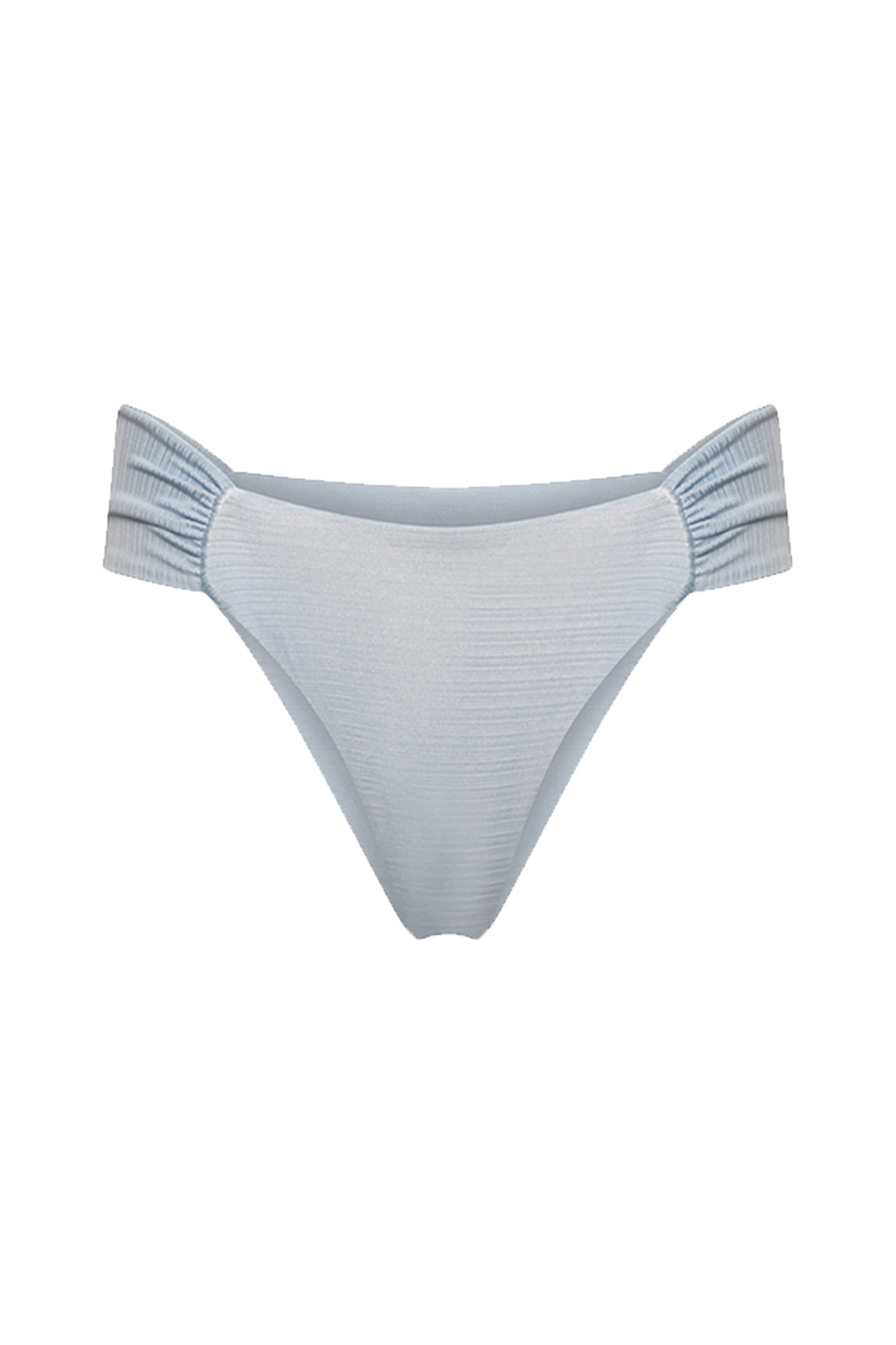 High-waisted cheeky bottom with a ruched waistband that sits above the navel. More delicate construction...
