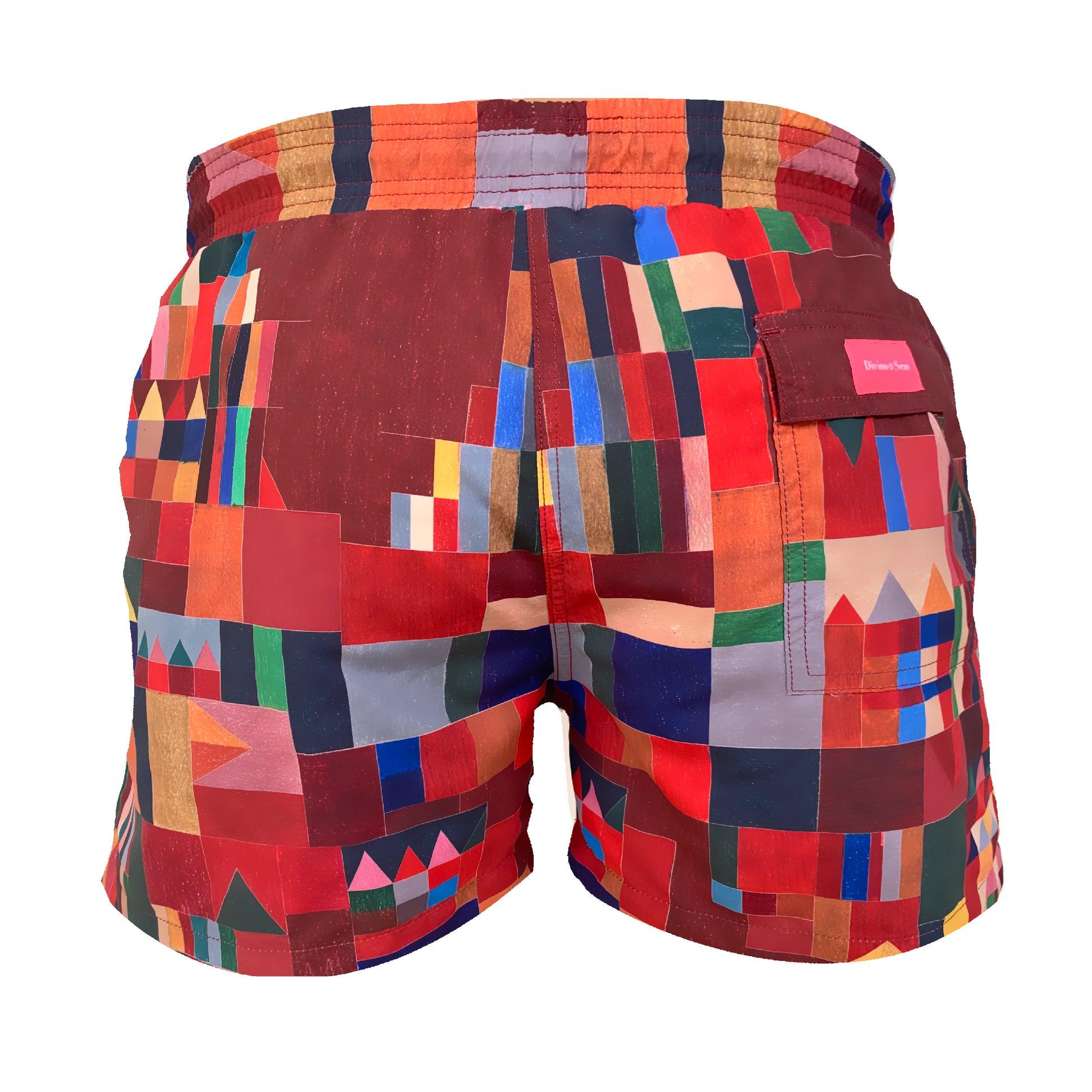 MY COUNTRY Swim Shorts - Maroon/Multicolor