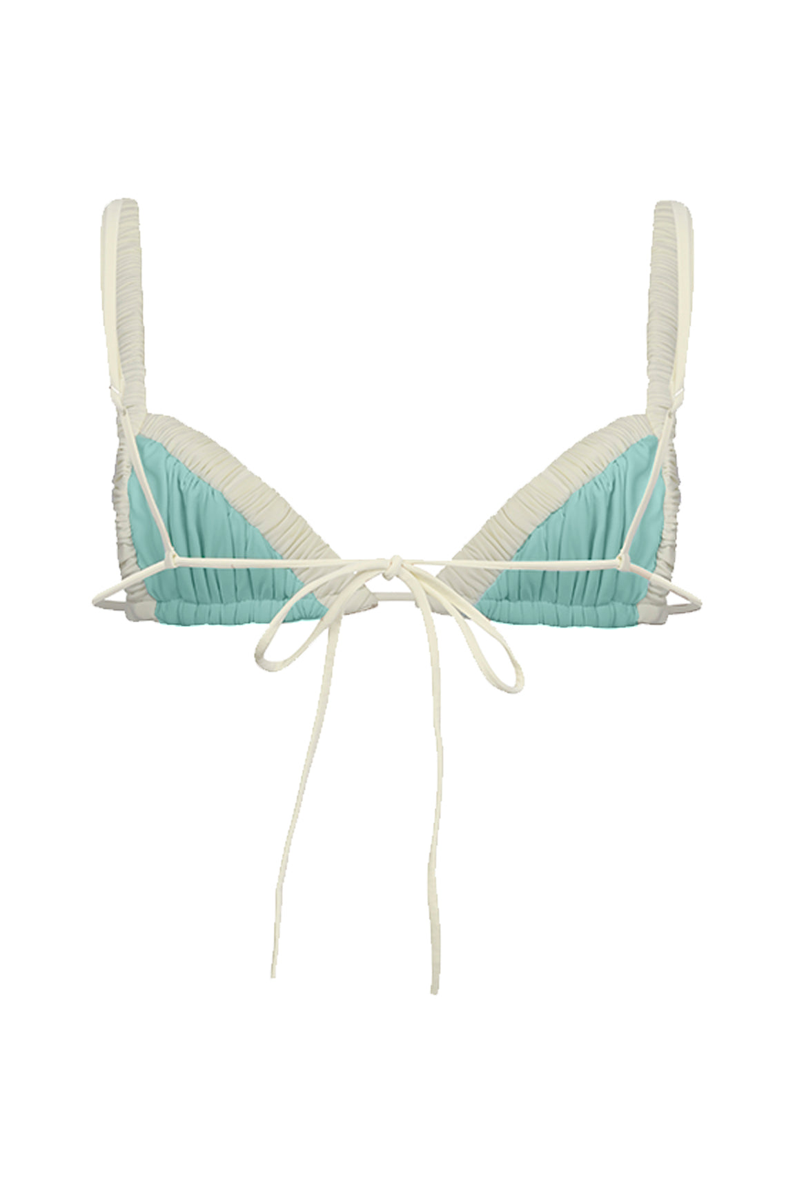 Soft ruffles frame the Ada bikini top, finished with an adjustable back strap that allows you to tailor the fit. Intended for a lighter, minimal-support feel, this piece is best worn one to two sizes up. Elevate the strap higher across your back for a secure hold that enhances both comfort and confidence. The higher you adjust the back strap, the more secure the top will stay in place.