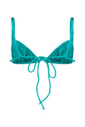 Soft ruffles frame the Ada bikini top, finished with an adjustable back strap that allows you to tailor the fit. Intended for a lighter, minimal-support feel, this piece is best worn one to two sizes up. Elevate the strap higher across your back for a secure hold that enhances both comfort and confidence. The higher you adjust the back strap, the more secure the top will stay in place.