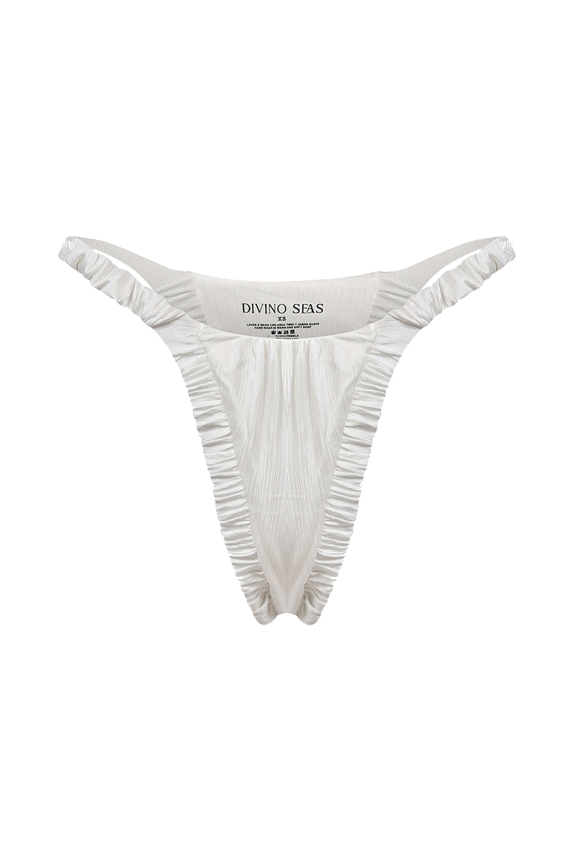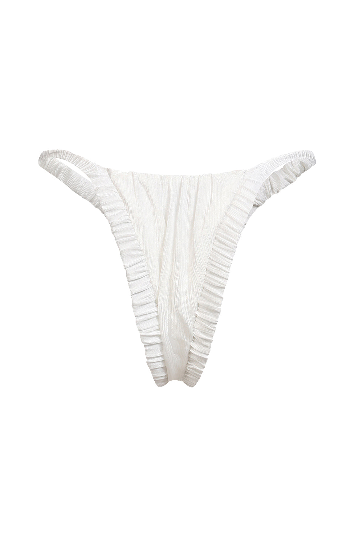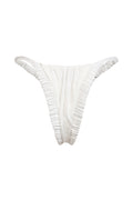 The Ada bottom in pearly white is timeless minimalism elevated. fully ruched silk creates a sculpting effect, while the seamless high-leg cut flatters the silhouette with a barely-there feel. effortless luxury for endless summer escapes.