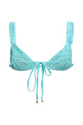 Soft ruffles frame the Ada bikini top, finished with an adjustable back strap that allows you to tailor the fit. Intended for a lighter, minimal-support feel, this piece is best worn one to two sizes up. Elevate the strap higher across your back for a secure hold that enhances both comfort and confidence. The higher you adjust the back strap, the more secure the top will stay in place.