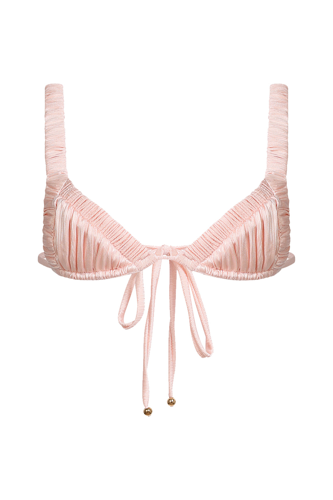Soft ruffles frame the Ada bikini top, finished with an adjustable back strap that allows you to tailor the fit. Intended for a lighter, minimal-support feel, this piece is best worn one size up. Elevate the strap higher across your back for a secure hold that enhances both comfort and confidence. The higher you adjust the back strap, the more secure the top will stay in place.