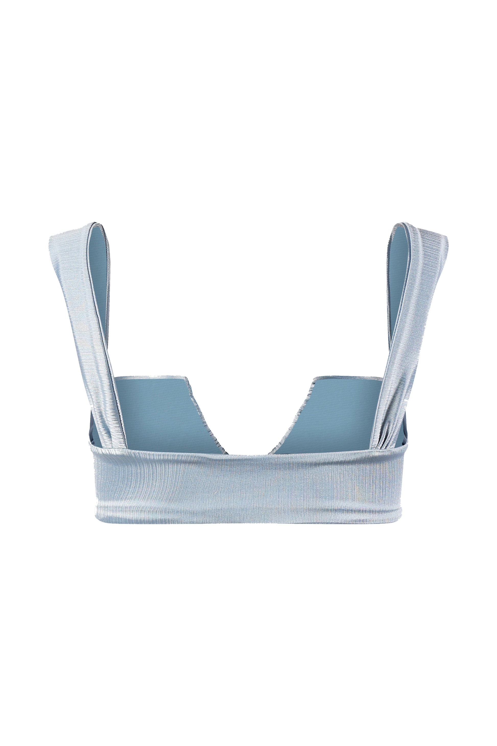 Inspired by clear coastal horizons, the Ana de Bretaña Top in Celestial Blue blends timeless design with a refined finish. Adjustable back ties ensure a tailored fit, while the smooth, silk-like fabric offers a gentle sheen under the sun.