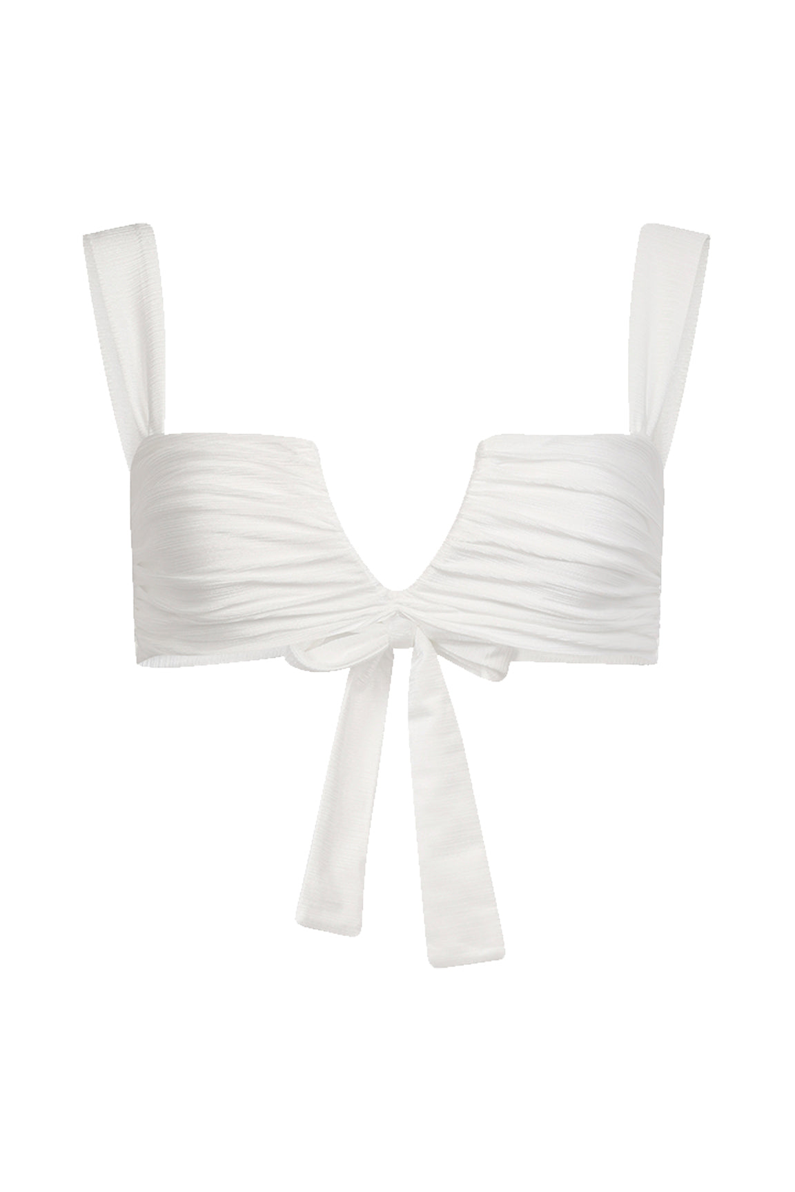 The Ana de Bretaña Top in Pearly White is one of Divino Seas’ all-time best-selling signature colors. Known for its luminous silk-like finish and timeless appeal, this staple piece is designed with adjustable back ties for a comfortable, customized fit.