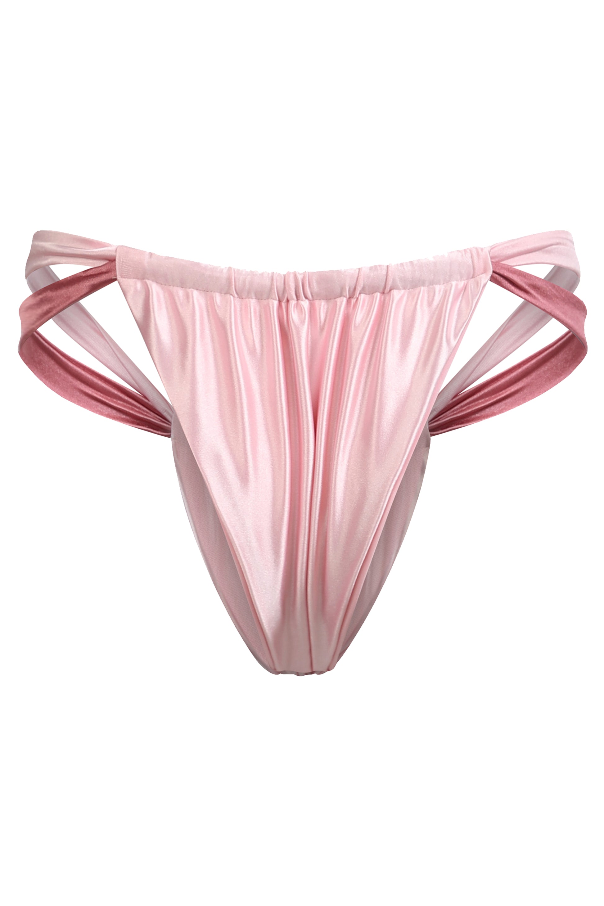 The new bikini rose pink color style called "Eclat" embodies a fresh and innovative approach to swimwear, specifically tailored to enhance femininity and beach elegance. The term "Eclat" translates to "radiance" or "brilliance" in French, capturing the essence of this design that aims to dazzle and shine.