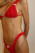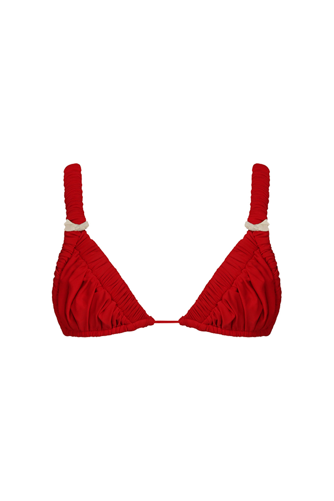 - Features: Adjustable triangle cups, gathered fabric, thin adjustable straps