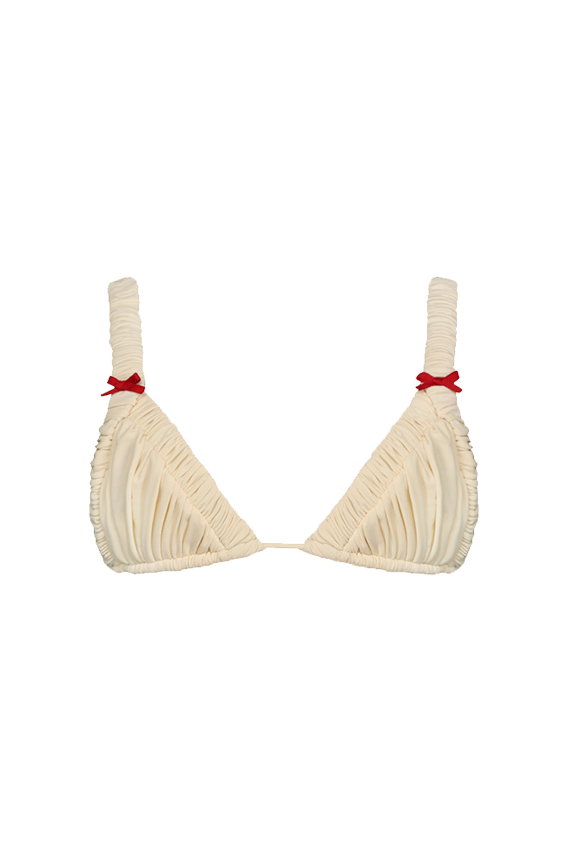 - Features: Adjustable triangle cups, gathered fabric, thin adjustable straps