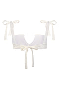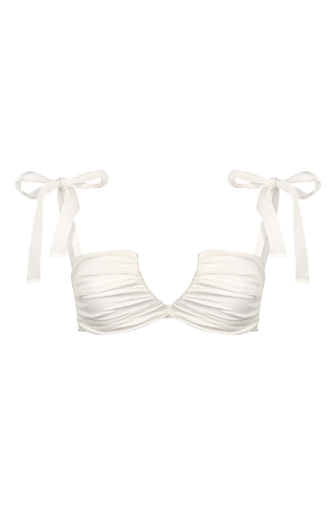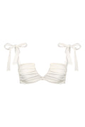 The essence of effortless allure. The Cute Ana de Bretaña Top in Pearly White revives an iconic silhouette in a shade as delicate as morning light. Its ruched center flatters the form, while silk-like ties frame the back with feminine ease.