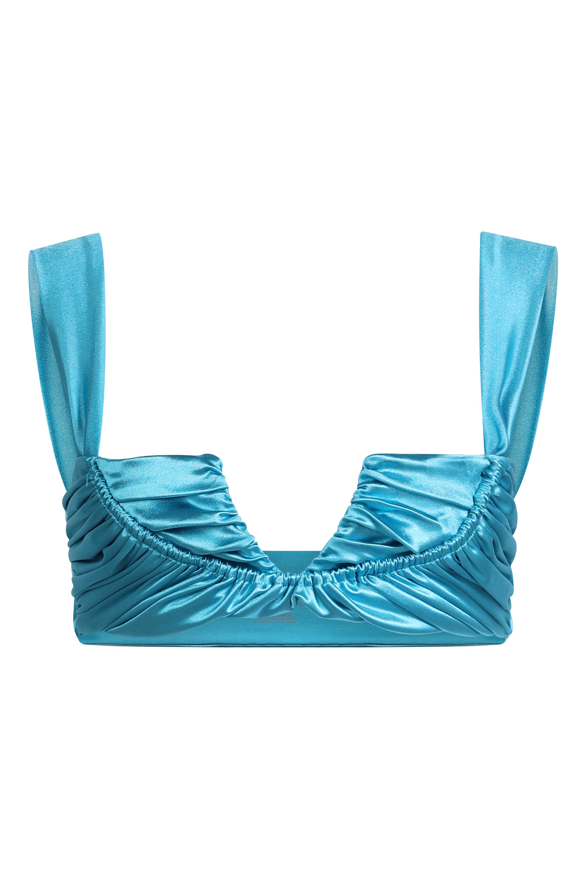 vibrant blue set mirrors the serene beauty of an atoll, with its radiant hue and chic design. The top provides impeccable support and style, while the bottoms offer a comfortable and elegant fit, ensuring you feel confident and glamorous all summer long.