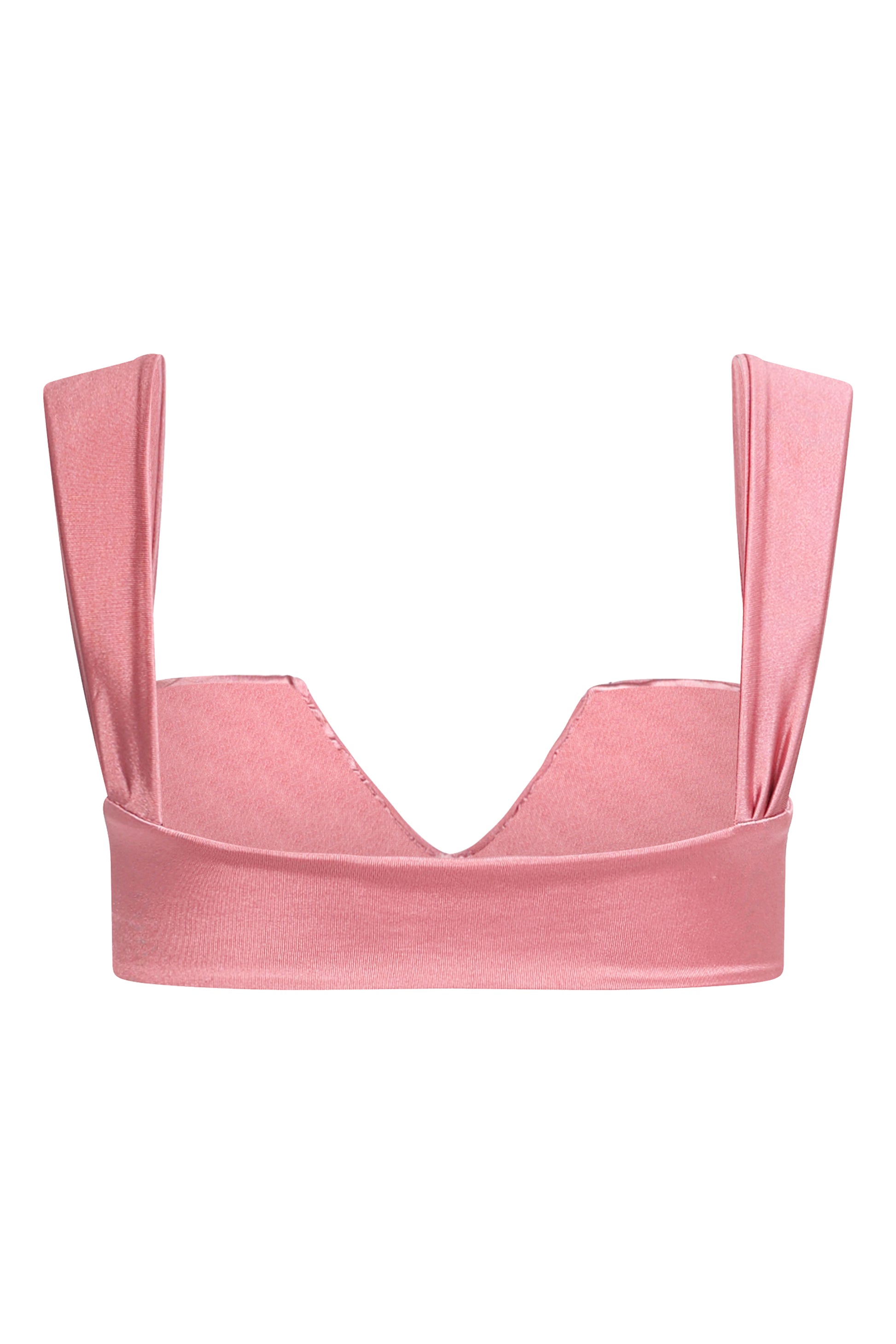 The top in a rose pink color, provides excellent support and a chic look, while the bottoms offer a flattering and comfortable fit, making it the perfect choice for a standout beach outfit.