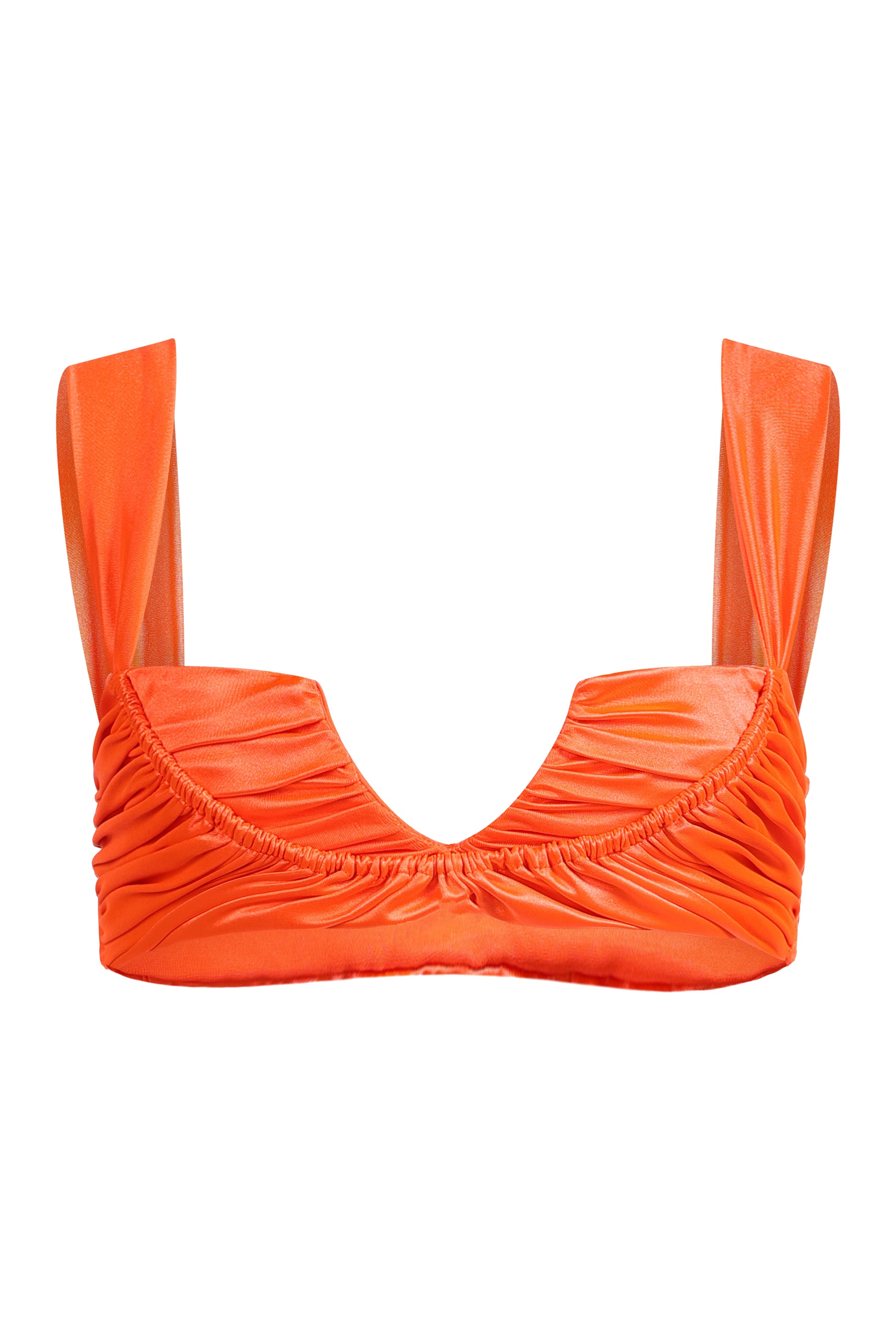 Infuse your summer style with the vivacious energy of the Éclat Tangerine bikini. This striking set features a bold tangerine color that captures the essence of sun-soaked Italian landscapes.
