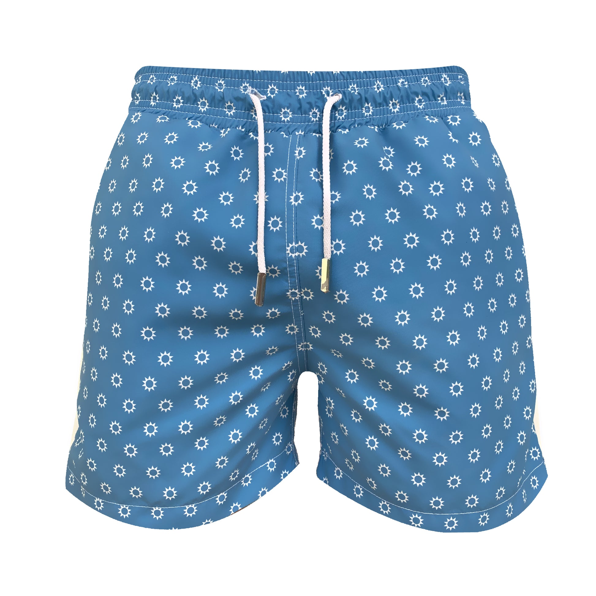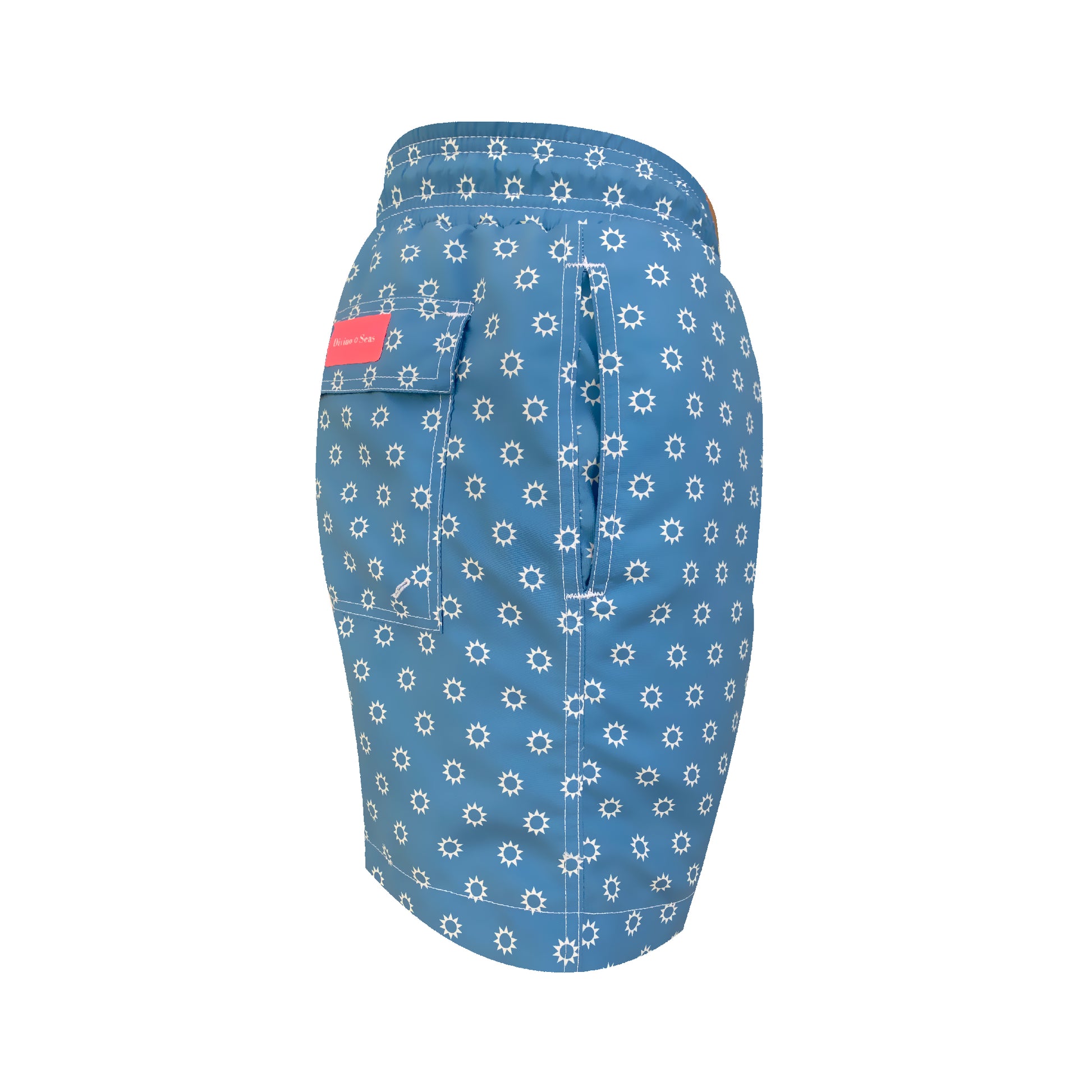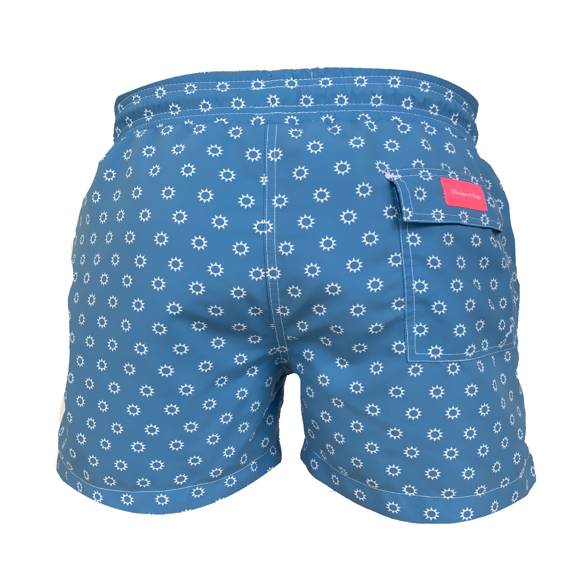 Blue and ivory divino seas logo original divino seas print men swimwear with fast dry.