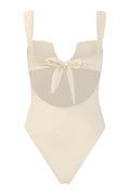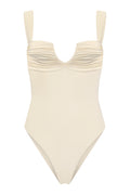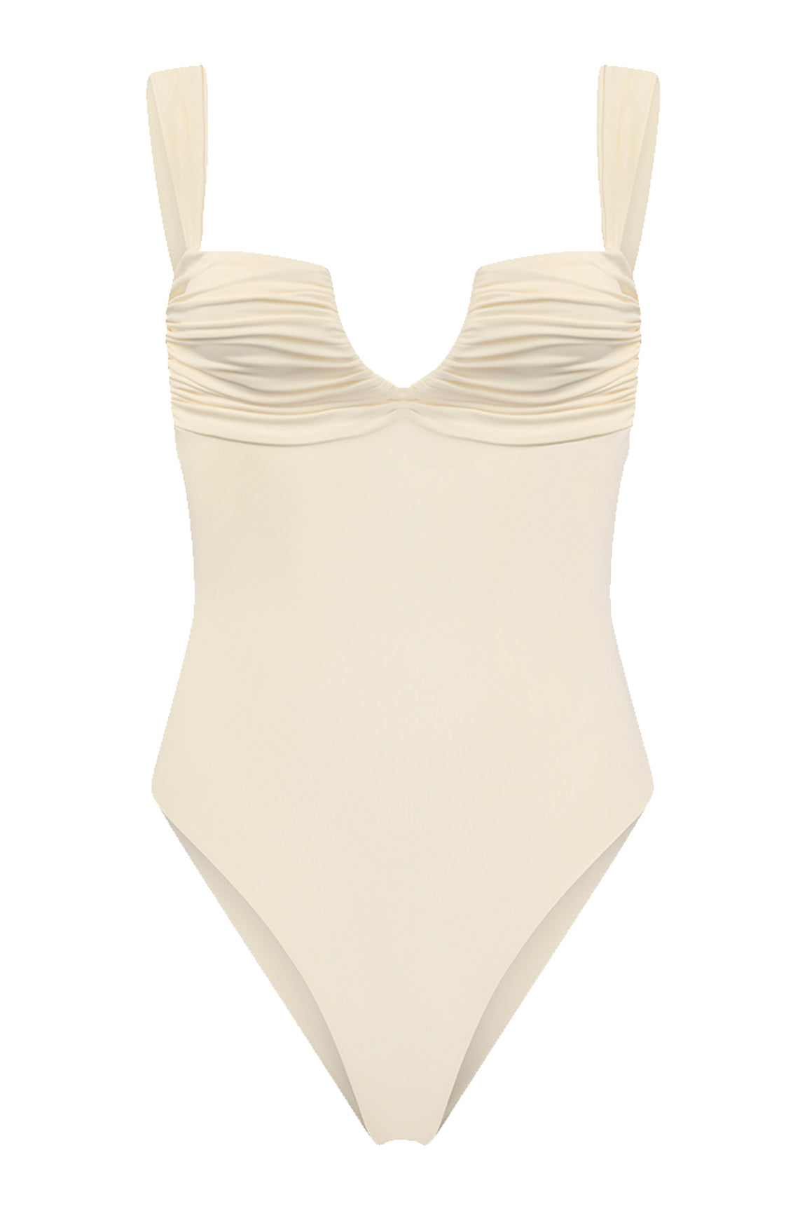 Our one piece best seller, The Natala one piece in Ivory Apricot redefines classic swimwear with its sculptural silhouette. a ruched silk bodice paired with a softly defined sweetheart neckline offers elegance and support, while the pearly white silk catches the light with an effortless shimmer. refined for poolside days and resort nights.