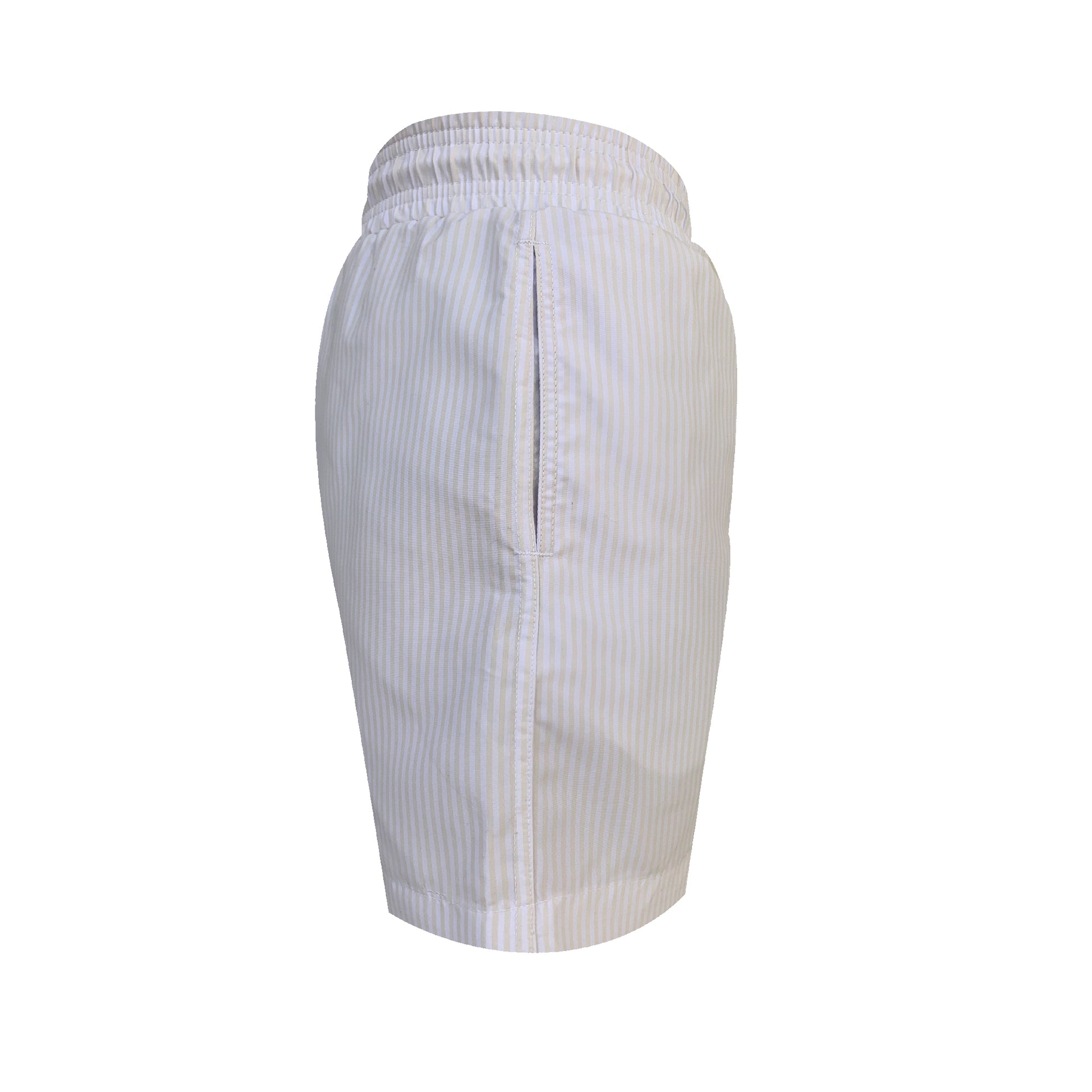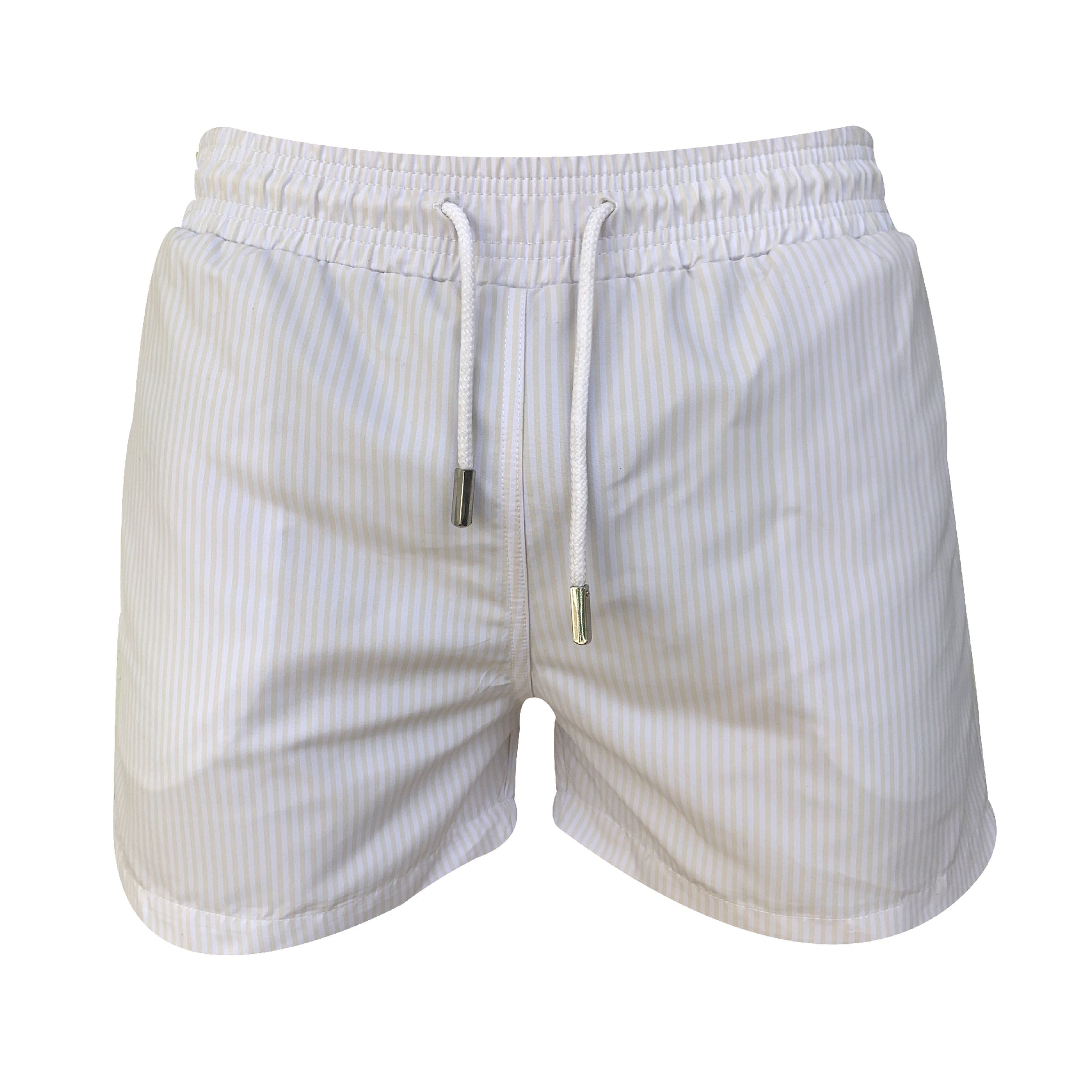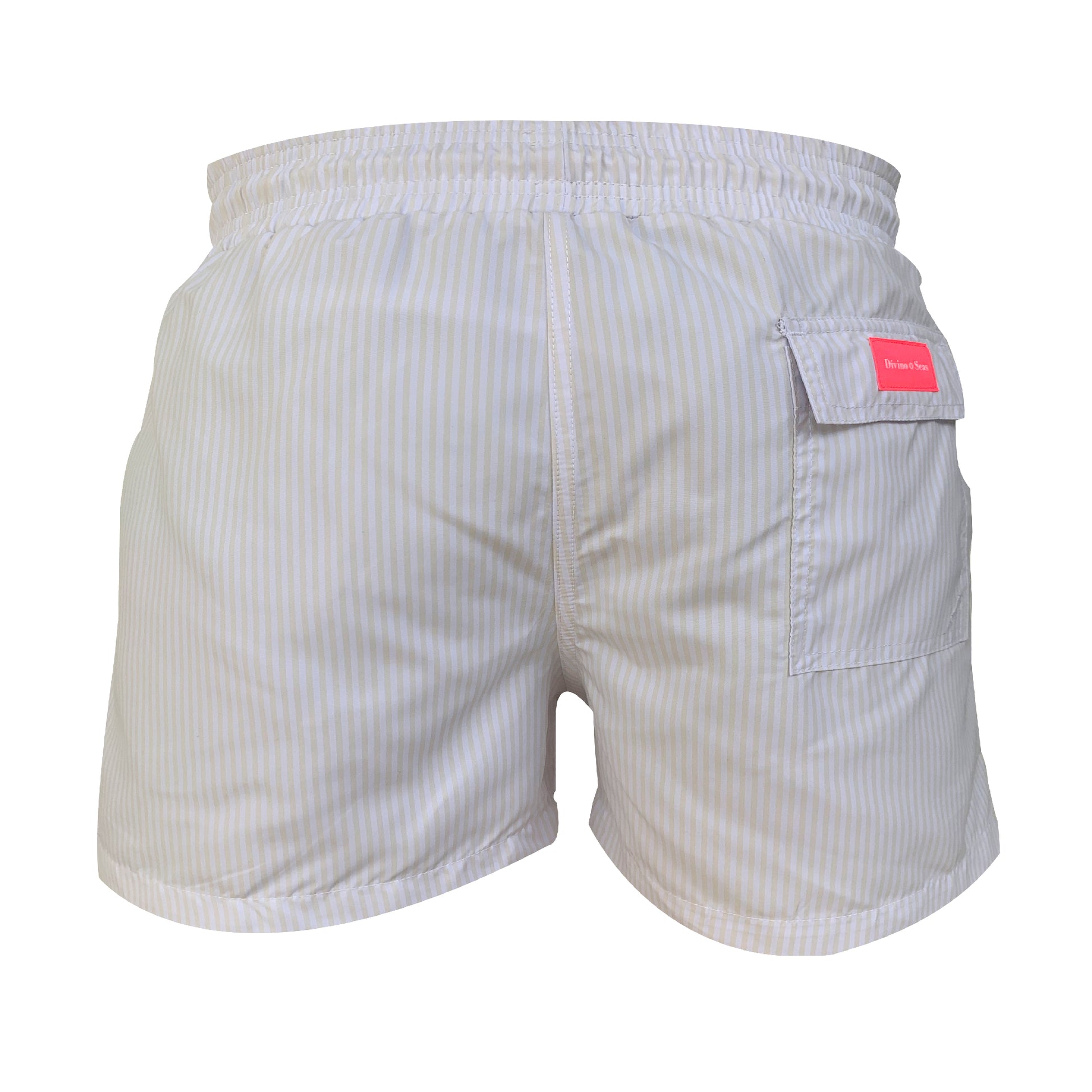 Ivory and White stripes original divino seas print men swimwear with fast dry.